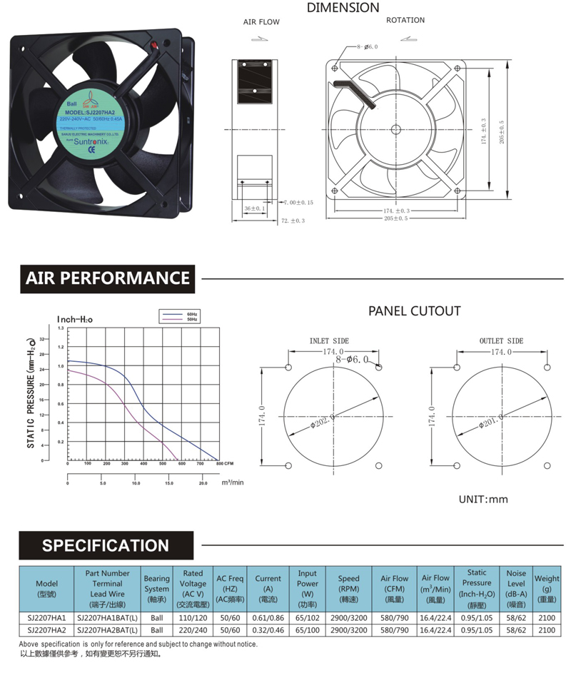 臺(tái)灣三巨SJ2207HA2-AC軸流風(fēng)扇