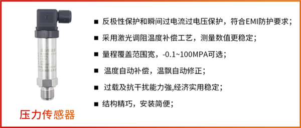 建大仁科壓力變送器采用高性能的感壓芯片,配合先進的電路處理和溫度補償技術,將壓力變化轉化為線性的電流或電壓信號。產品體積小巧,易于安裝,采用不銹鋼外殼隔離防腐,適于測量與接觸部分材質相兼容的氣體和液體等介質,它可以用來測量表壓、負壓和絕壓。適用于工業現場過程控制壓力的測量。廣泛用于水廠、煉油廠、污水處理廠、建材、輕工、機械等工業領域,實現對液體、氣體、蒸汽壓力的測量。