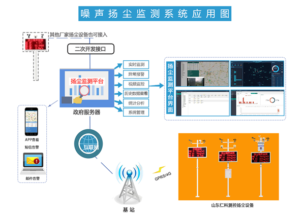 噪聲揚(yáng)塵監(jiān)測系統(tǒng)由前端數(shù)據(jù)監(jiān)測站、通訊服務(wù)器和環(huán)境監(jiān)測云平臺(tái)構(gòu)成,能夠?qū)κ┕がF(xiàn)場的環(huán)境進(jìn)行實(shí)時(shí)在線監(jiān)測與預(yù)警監(jiān)管,及時(shí)反饋工地噪聲、揚(yáng)塵的情況。